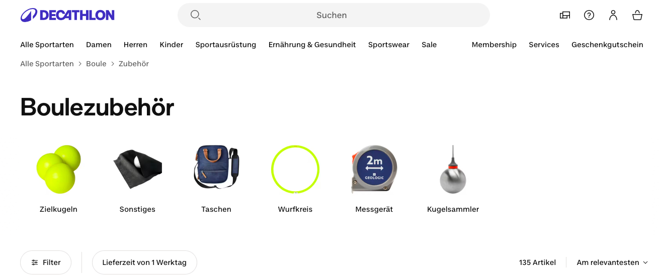 Eine solide Einkaufs-Quelle ist der französische Sport-Riese Decathlon. Im Sommer findet man in den Filialen gelegentlich auch Boule-Produkte zum Anfassen, die große Auswahl aber gibt’s das ganze Jahr im Online-Shop.